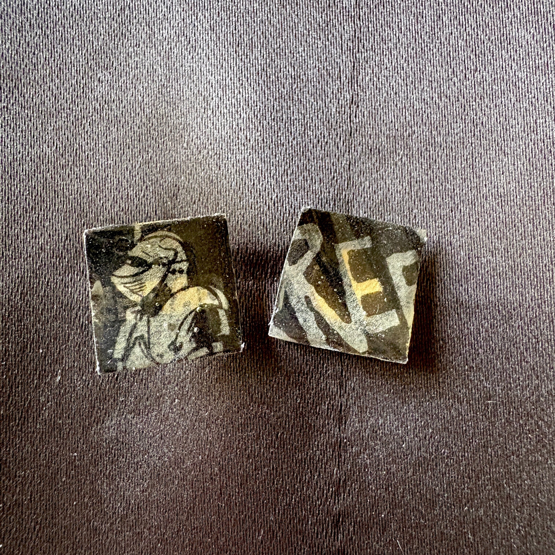 These earrings stand out for their original designs, combining the armor and sound inspired by the 1991 Dylan Dog comic in a single piece. Featuring a screw-back stud, they are crafted from resin and feature an authentic cutout from issue 17 of the Dylan Dog comic, "The Lady in Black," from the 1990s. To maintain their quality, we recommend avoiding contact with water.