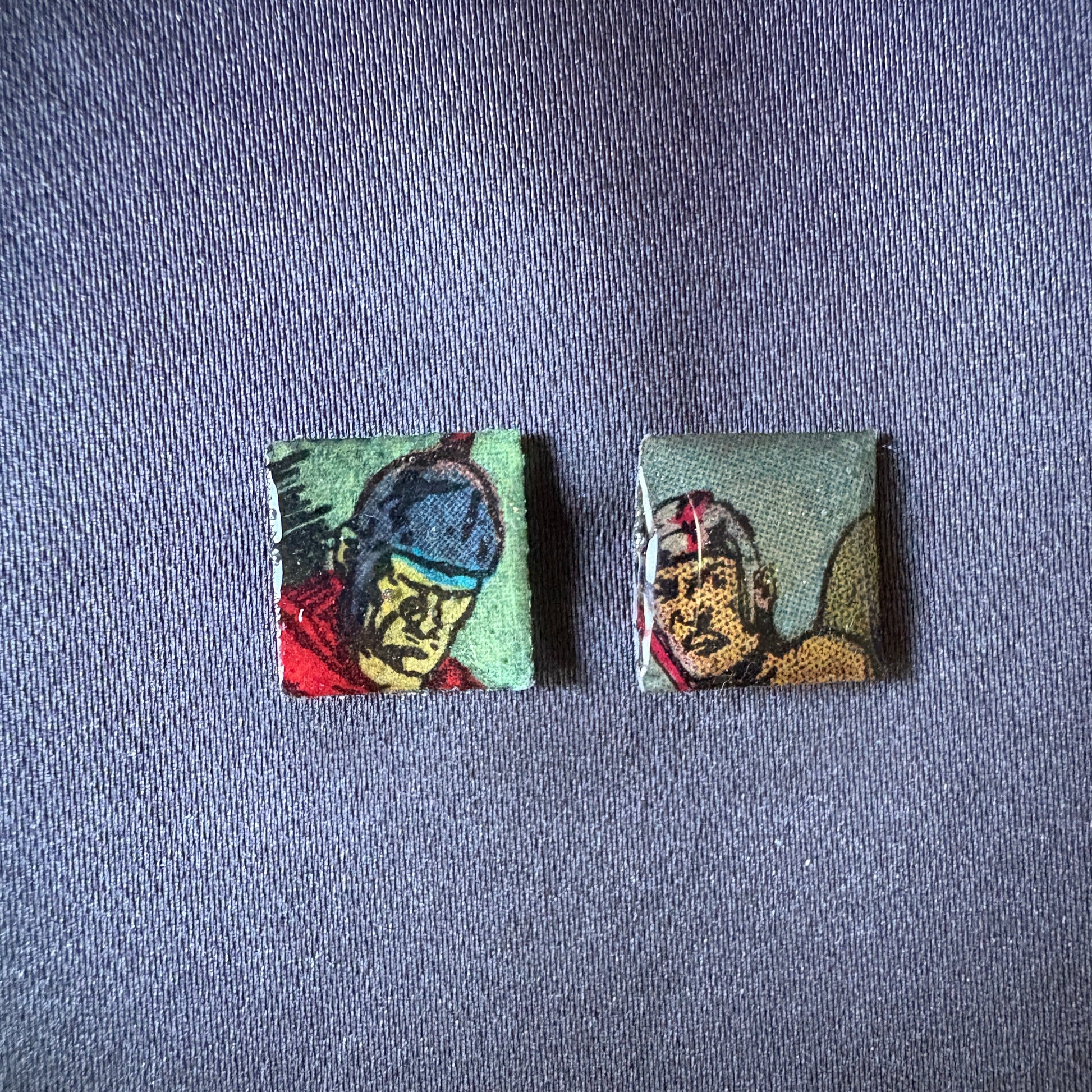 Stud earrings with screw backing, made of resin with an original clipping, taken from a 1957 Gordon comic strip