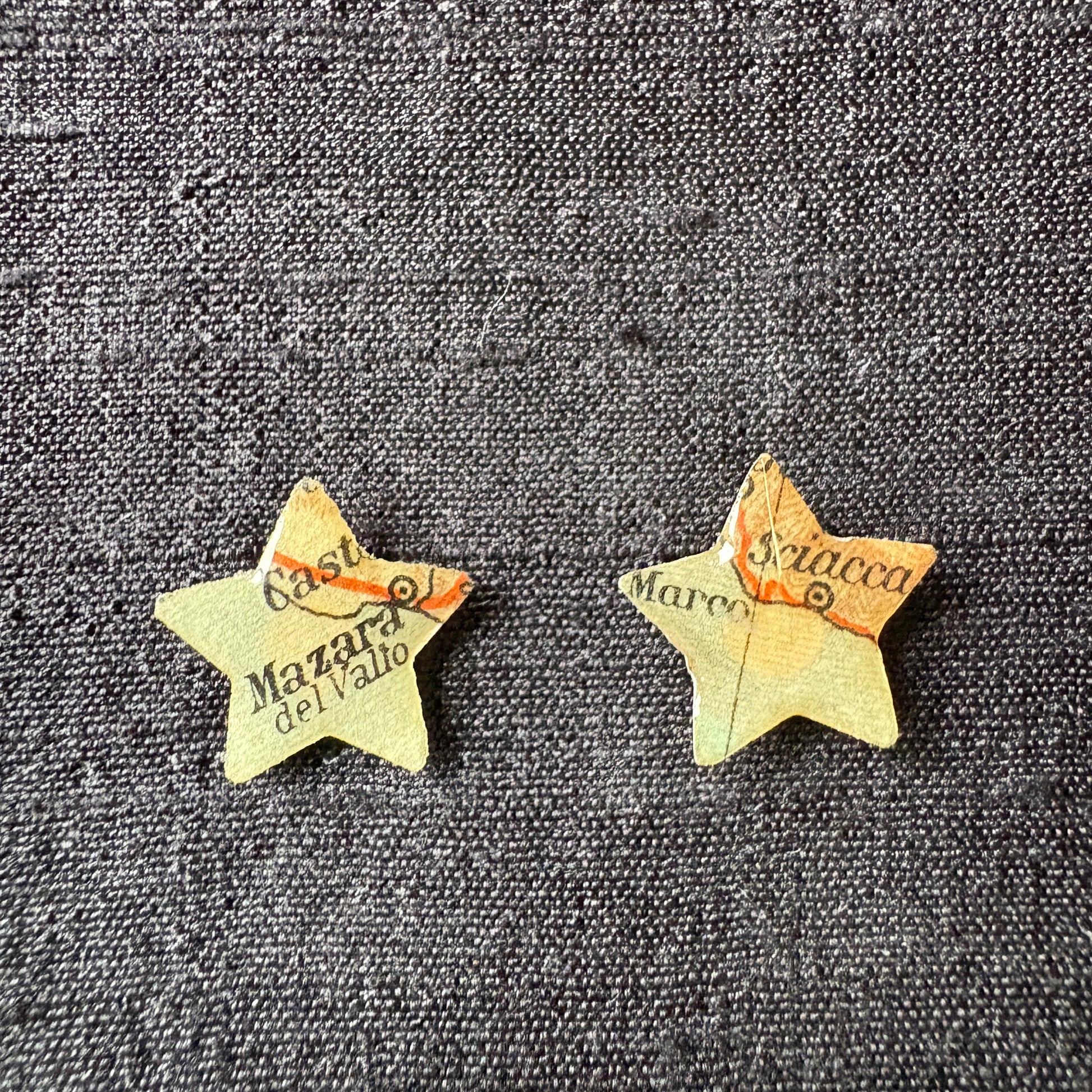 These stud earrings embody the essence of coastal Sicily through refined artisanal design. Entirely handcrafted from resin, they feature an authentic cartographic detail from a 1932 atlas, making each piece unique. The screw closure ensures security, while their lightweight design makes them comfortable for extended wear. Perfect for those who appreciate craftsmanship and history. To preserve their integrity over time, we recommend keeping them dry.
