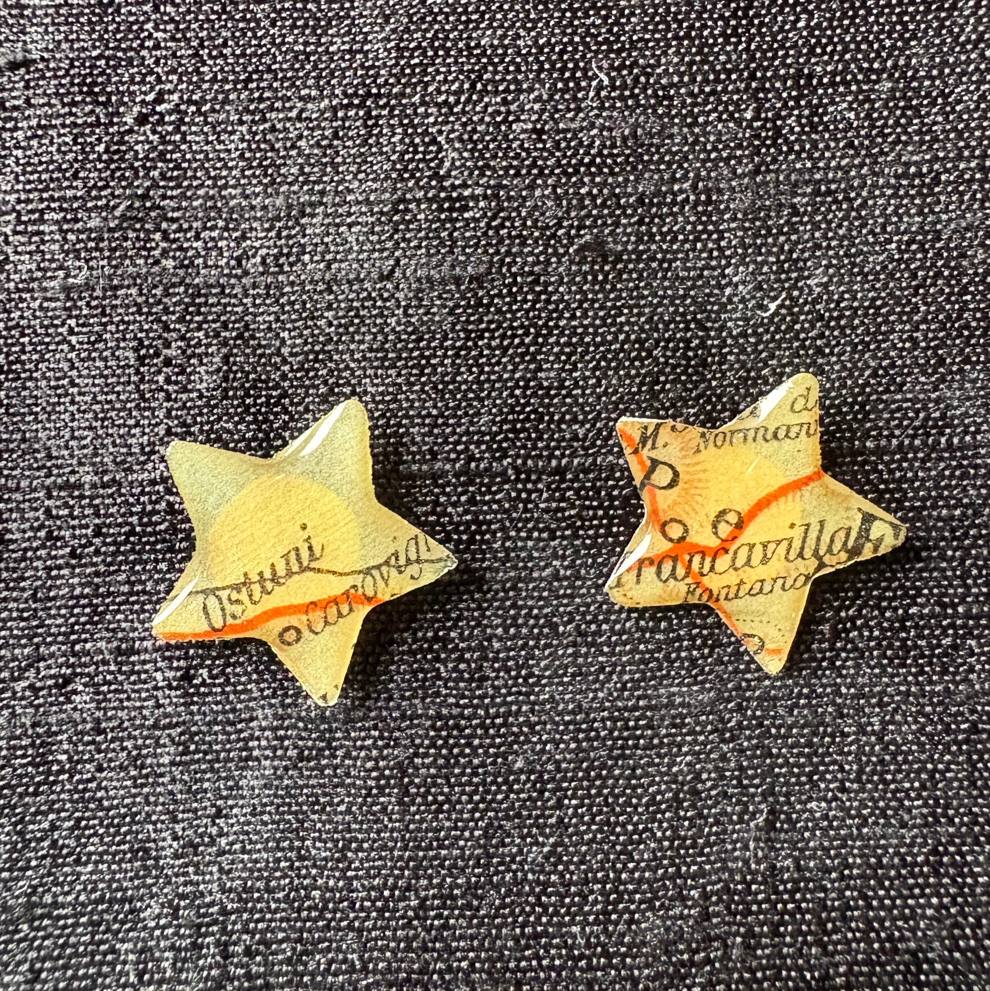 These screw-back stud earrings feature an original map from a 1932 Atlas, depicting the Alto Salento region of Puglia. Crafted from resin, they combine lightness with an exclusive and distinctive design. Each piece is a unique work that captures the region's historical geography. Their delicate nature requires careful maintenance: avoid contact with water to preserve their integrity over time.