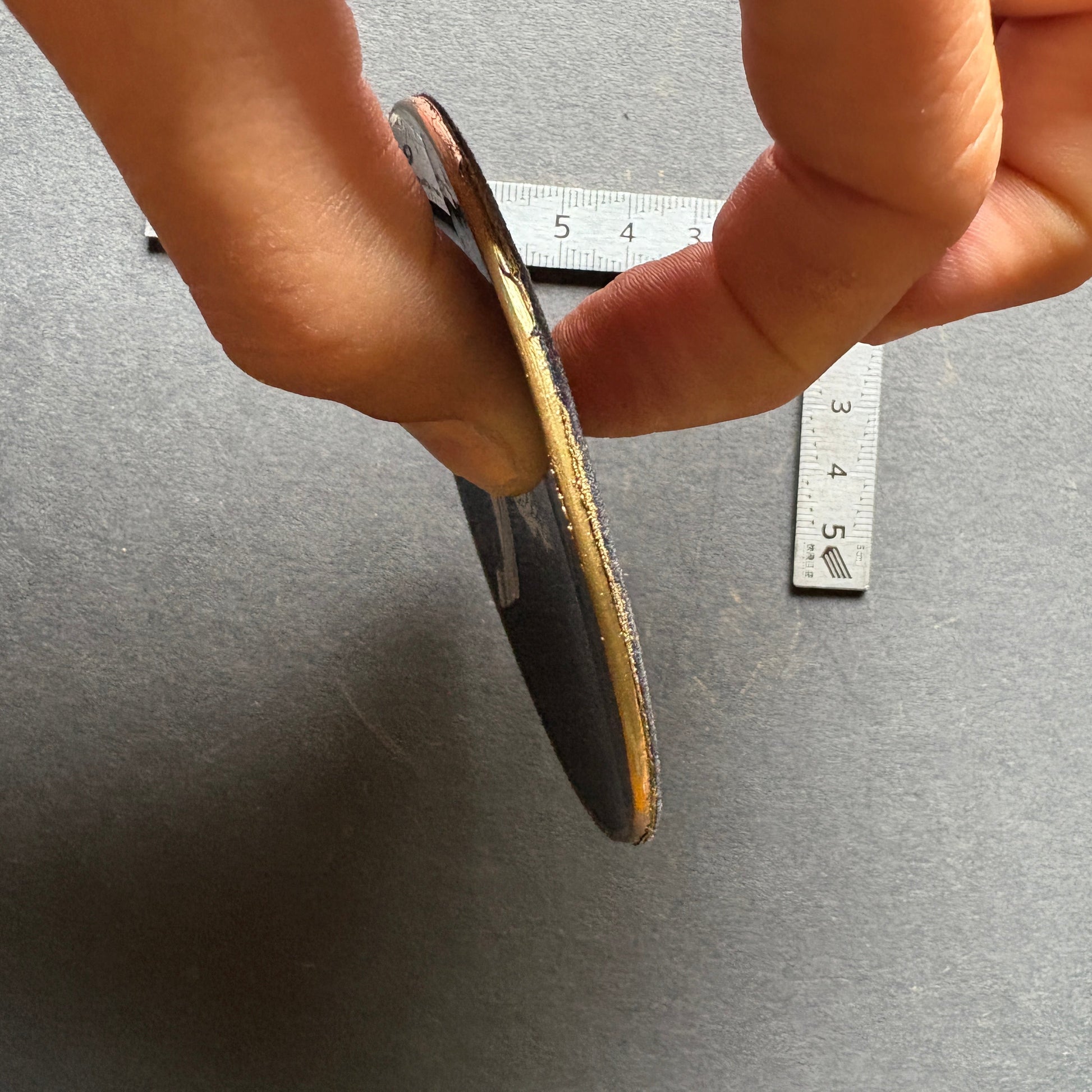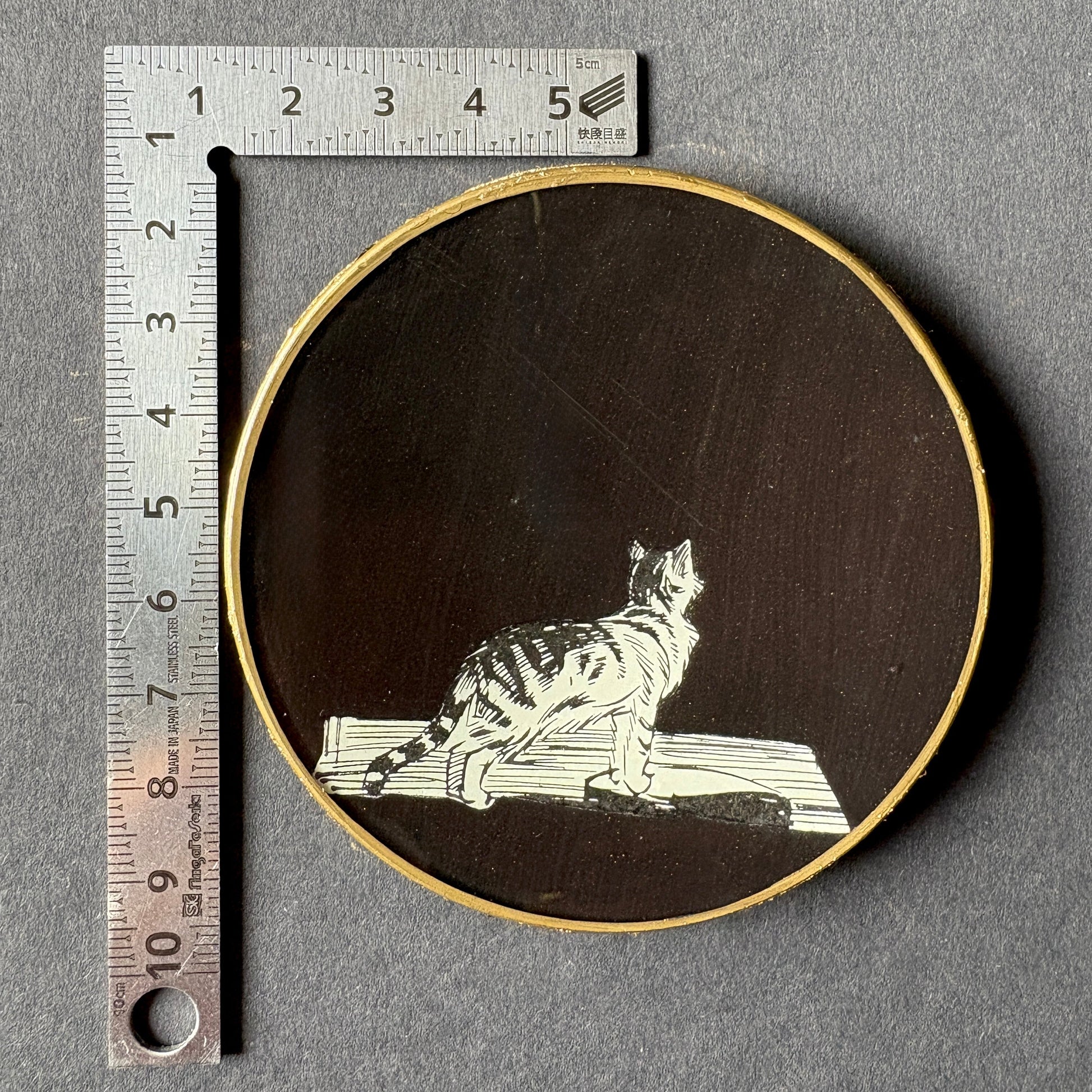 An authentic fragment from the 1950s, recontextualized against a hand-painted black background. This piece draws inspiration from the book "Tricky the Goblin," illustrated by Eileen A. Soper, and represents an example of the creative recovery of archival material. The composition, enclosed in an 8 cm diameter glass frame, transforms a historical document into a contemporary decorative object. The black velvet base lends elegance and stability. Each piece constitutes a small collection of visual memory, preserved with attention to detail. Care instructions: Wipe gently with a dry cloth.