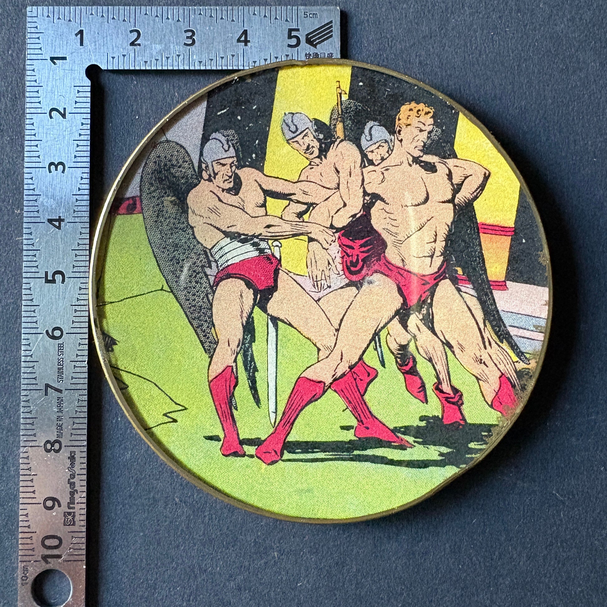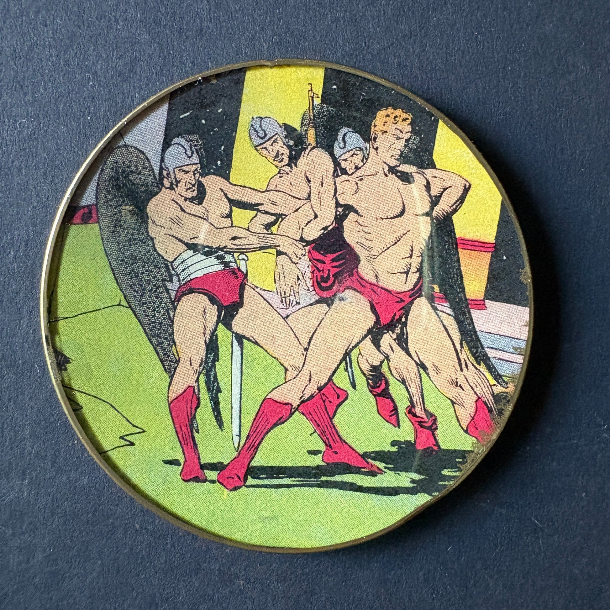 A delicate container that celebrates your favorite character with minimalist elegance. This mini shelfie holds an authentic fragment from a 1964 Gordon comic, meticulously preserved beneath a transparent glass cover. Transform your space into a personal gallery where nostalgia and design meet. With a diameter of 8 cm and a black velvet base, it becomes a collector's item that tells a story. Clean gently without water.