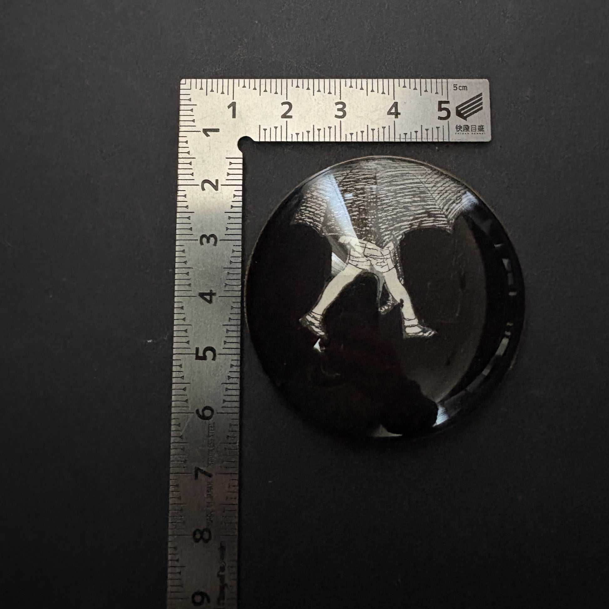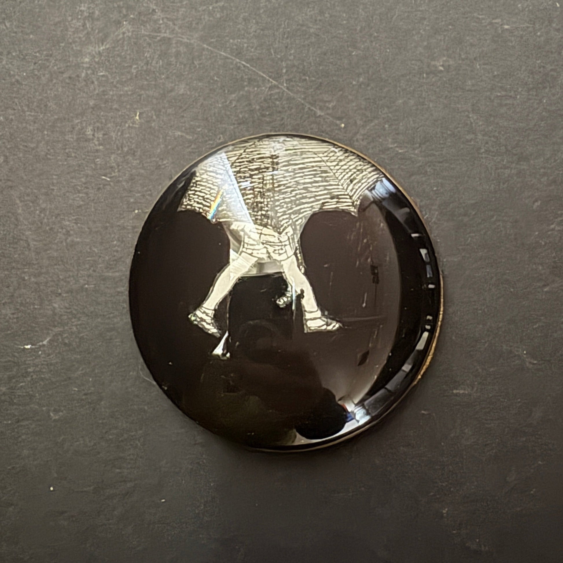 This Wink is part of the "Favoloso" collection, inspired by the world of fairy tales. The 1957 cut-out design, against a black background, is based on an illustration by EH Shepard. The 5 cm diameter glass lens is protected by a black velvet backing. It is recommended to clean it gently with a cloth, avoiding contact with water.