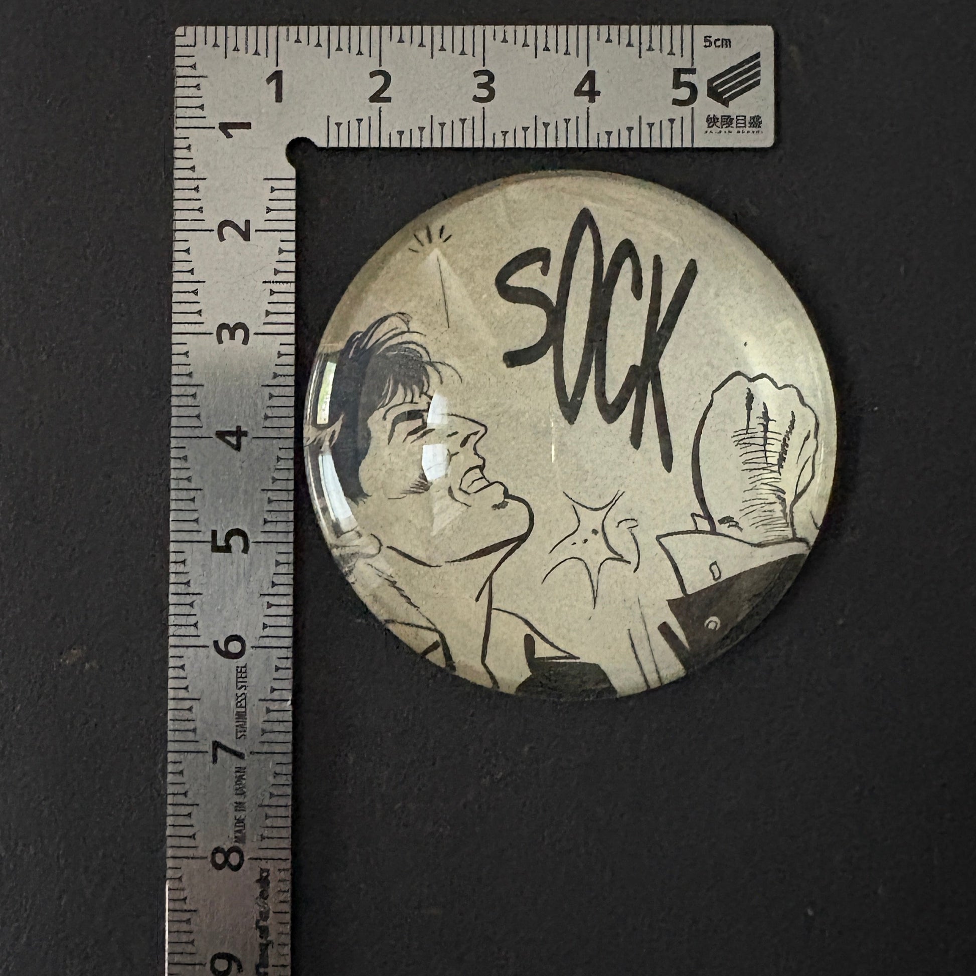 Dylan Dog didn't just live moments of serenity: between kisses and fists, his life was intense. Do you consider yourself a peaceful person, or do you think a wink or something like that can express more than a thousand words? This original 1991 clipping, taken from the comic "The Lady in Black," is enclosed in a 5 cm diameter glass lens, with an elegant black velvet background. To clean, use a dry cloth; avoid contact with liquids.