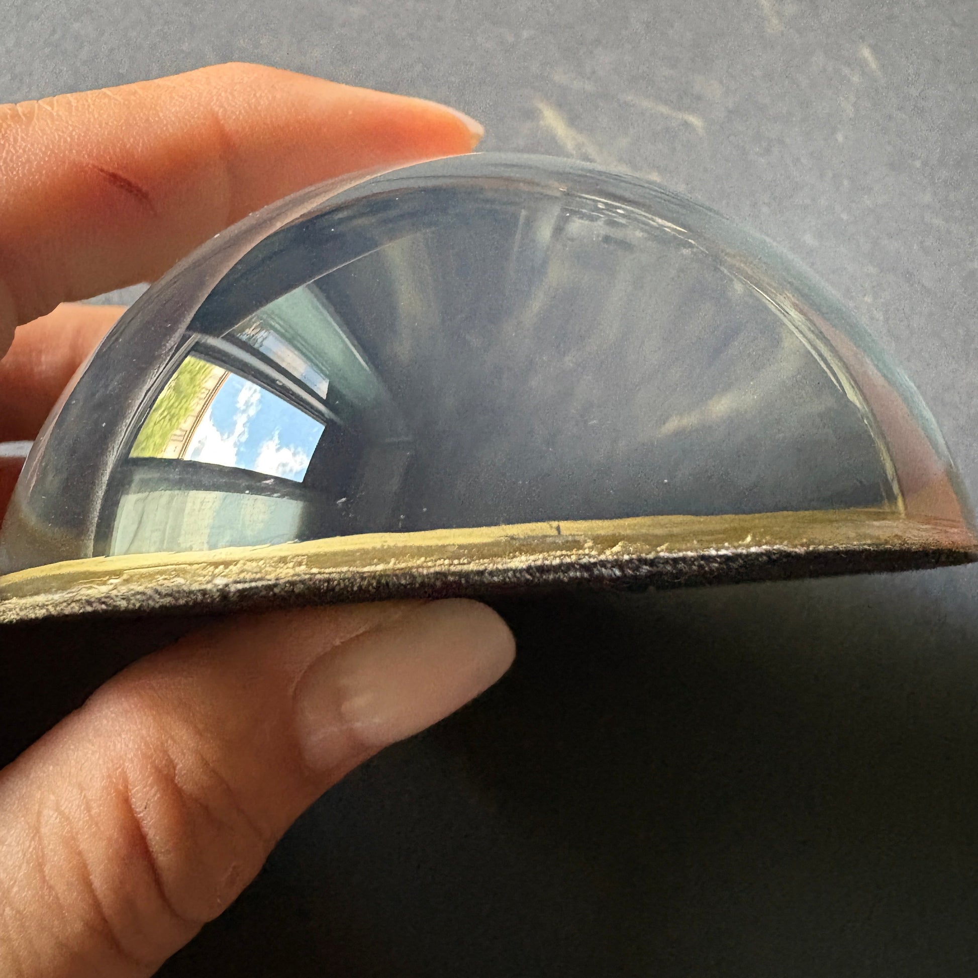 The piece, unique like all the others, is being sold at a discount because there are some scratches on the glass surface.