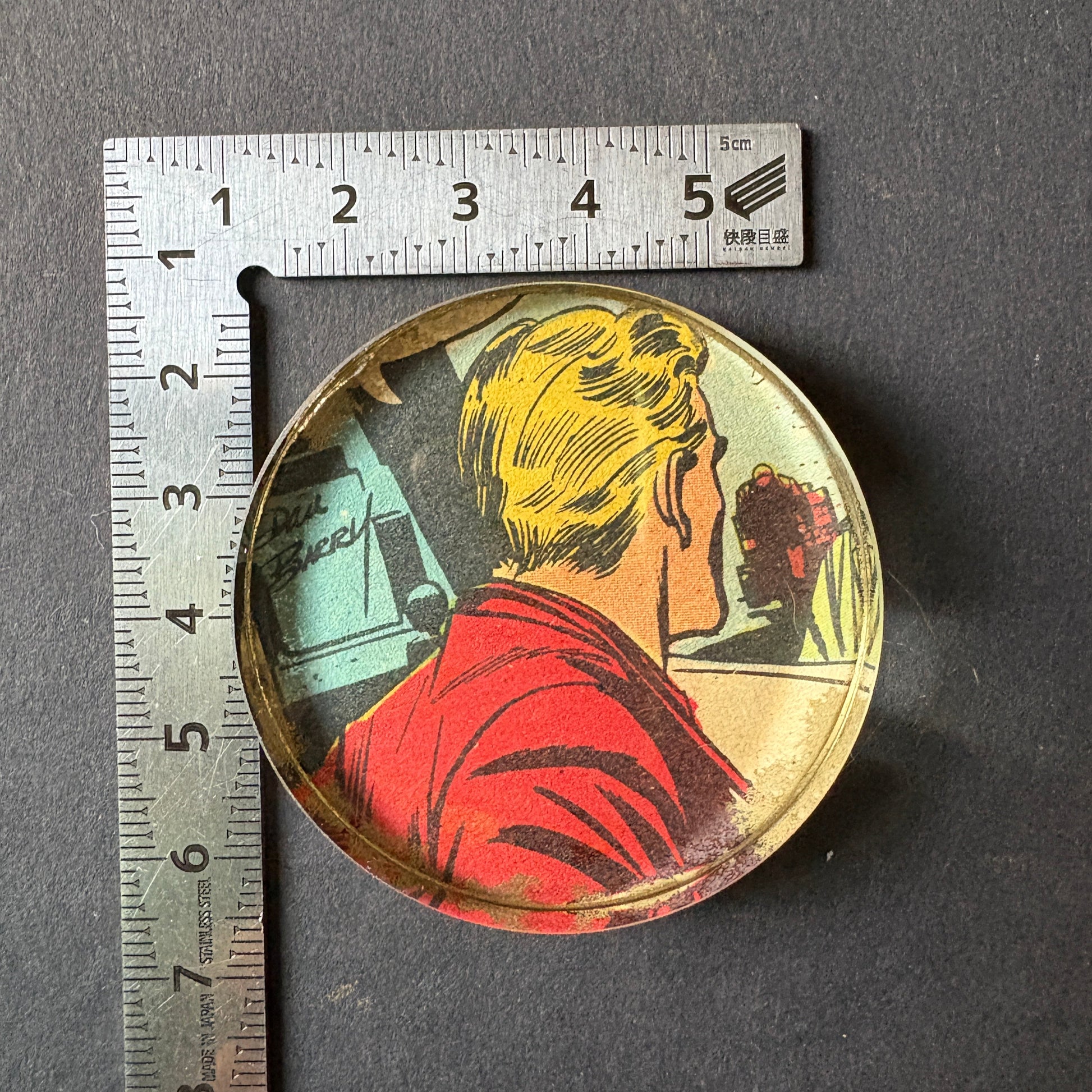 Round in shape, 5cm wide, 1cm high. The bottom is made of black velvet.