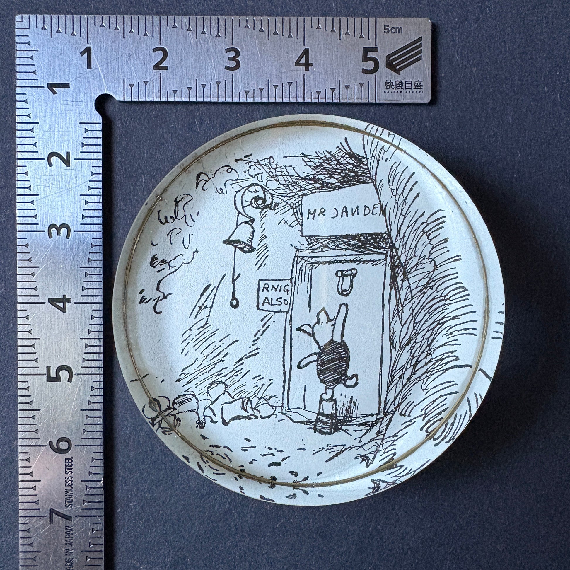 This paperweight preserves fragments of classic literature in an elegant, minimalist form. Crafted from an authentic 1957 clipping of EH Shepard's original illustrations, it features a circular geometry measuring 5cm in diameter and 1cm in height, finished with a black velvet base that enhances its refinement. Beyond holding documents on your desk, it becomes a small monument to unforgettable moments and personal reflections. Maintenance is simple: simply wipe the surface gently with a dry cloth. An object that transforms everyday life into poetry.