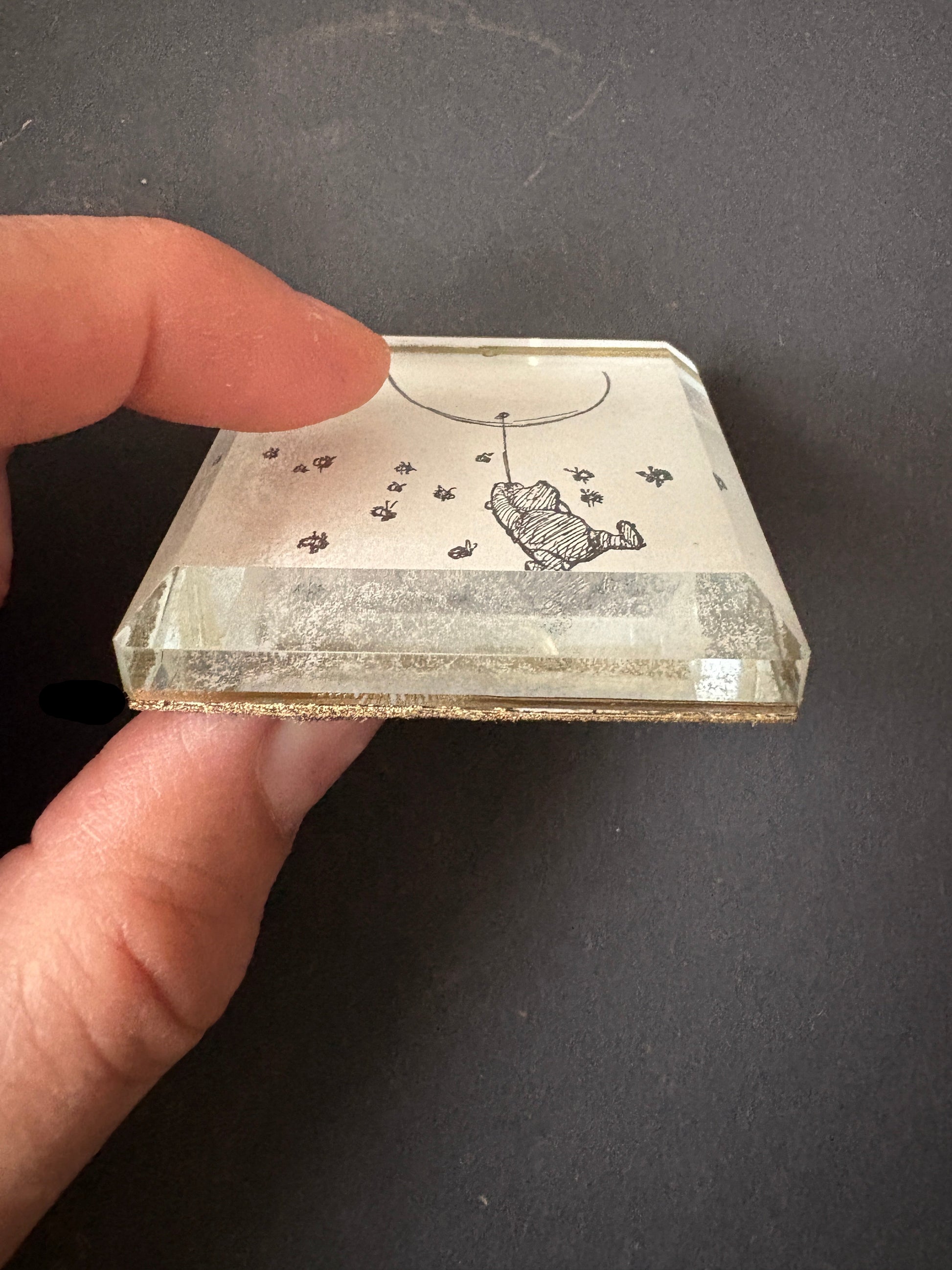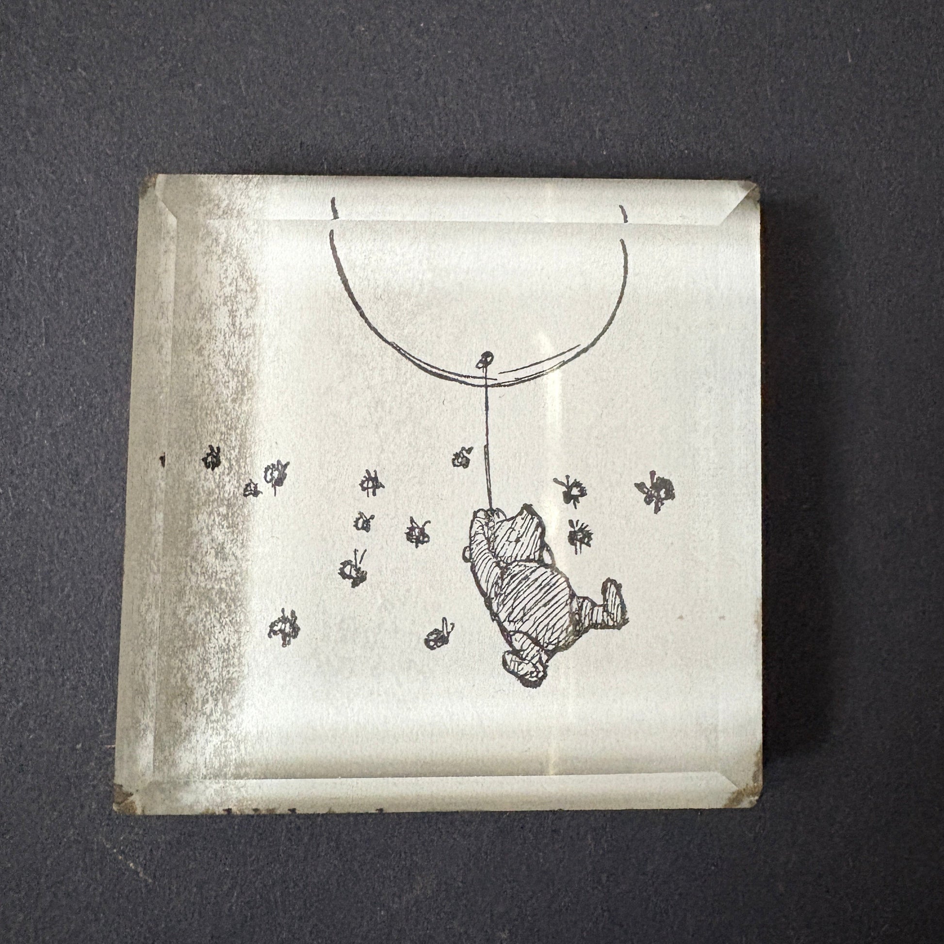 This PostaFerma is a true collector's item, featuring an enchanting original 1929 image of Winnie the Pooh, drawn by Ernest H. Shepard. This elegant square paperweight (5 x 5 cm, height 1 cm) with a black velvet base not only holds papers, but also preserves memories, words, and fragments of life. Perfect for fairytale lovers who want a touch of lightness on their desk.