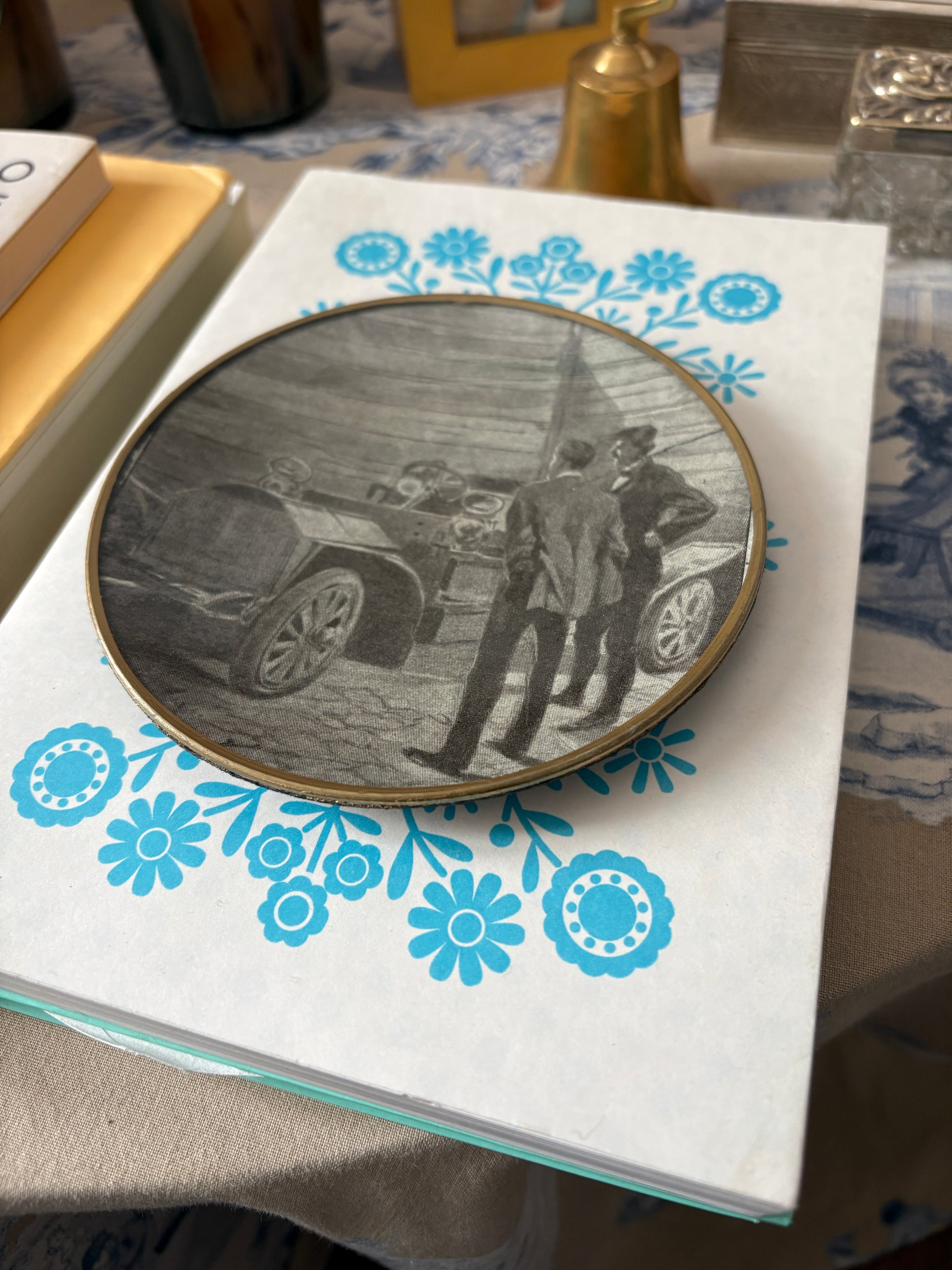 This round Shelfie, 10 cm in diameter, contains an image from a French volume, 'La semaine des familles', from 1890-91.