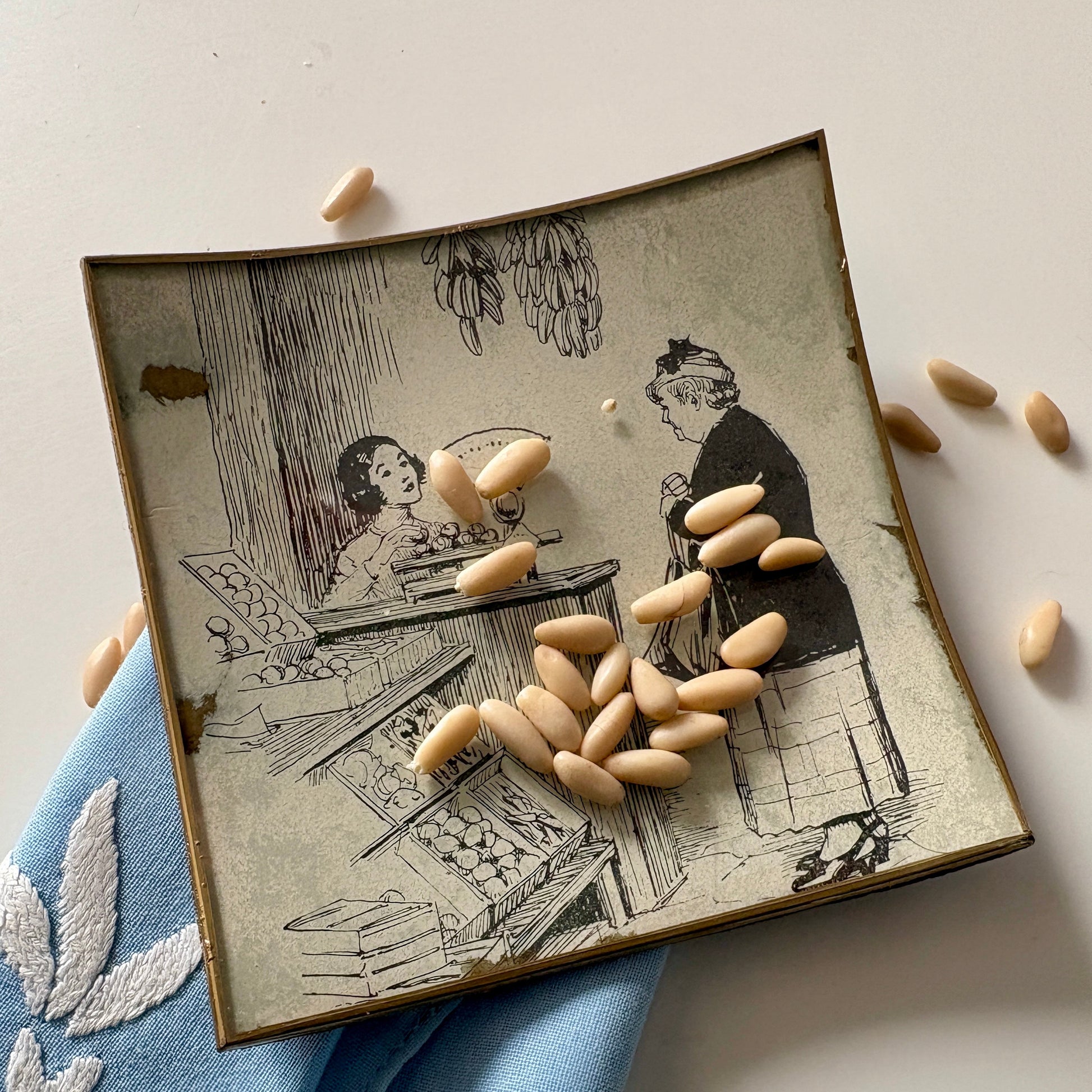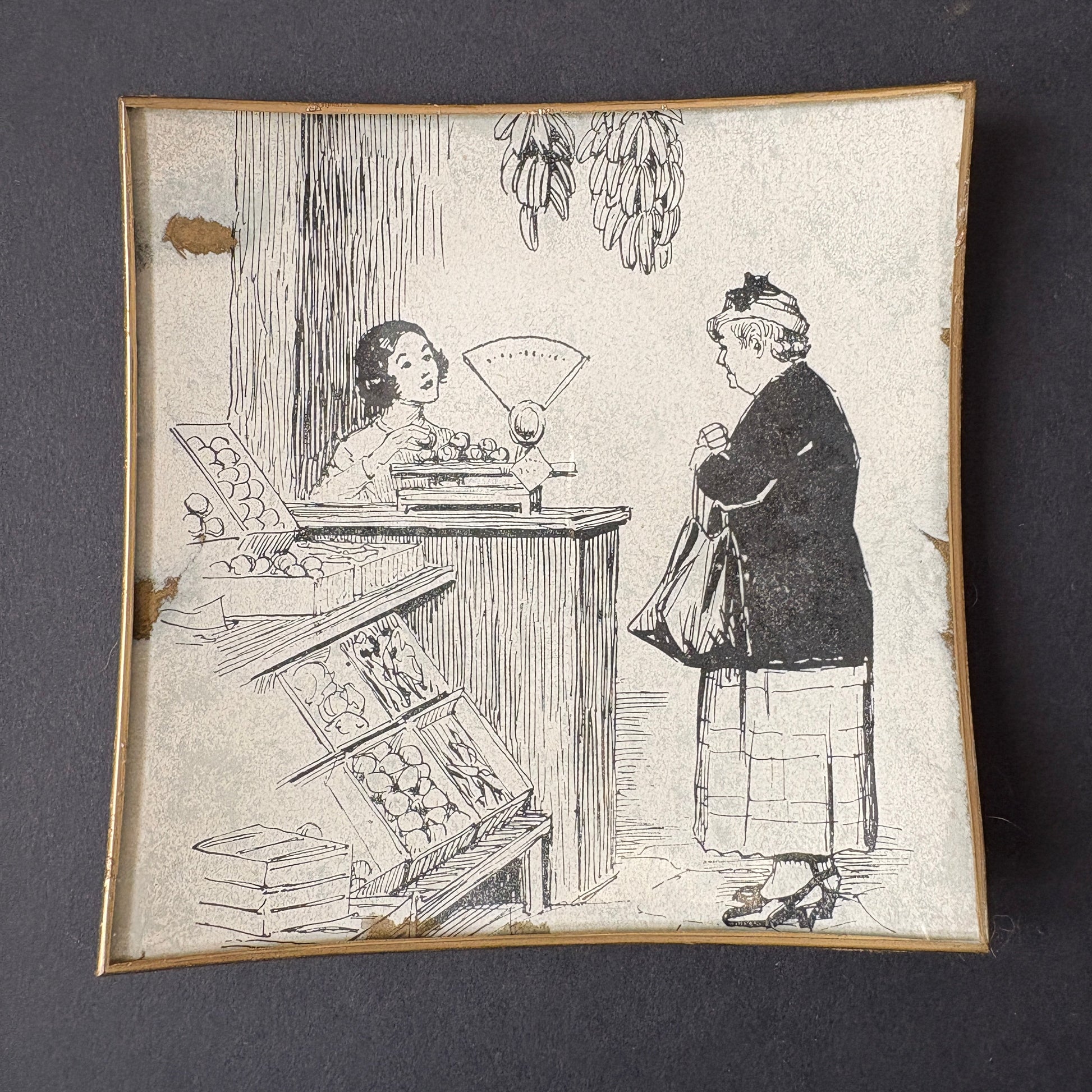 An authentic 1953 piece from "Marina ei segugi," where gold details emphasize the vintage character of this rare collection. This 11.5 x 11.5 cm square rests on an elegant black velvet background, transforming a simple cutout into a statement piece. Its historic patina and exquisite finishes make it a sophisticated addition for those who appreciate the authenticity of the past. Gentle care: Wipe with a damp cloth, avoiding immersion in water.