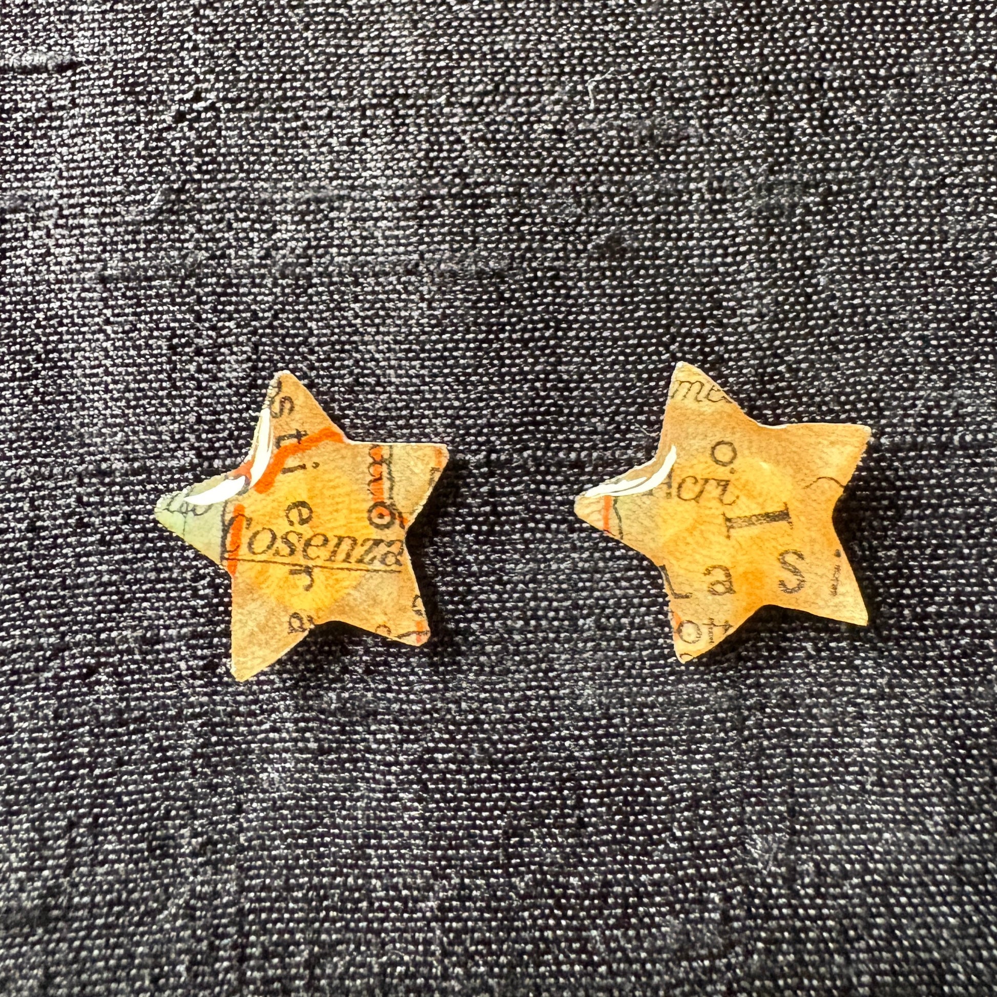Questi orecchini a perno catturano l'essenza della Calabria attraverso un dettaglio cartografico autentico. Realizzati in resina con un estratto originale da un Atlante Geografico del 1932, presentano una chiusura a vite che garantisce sicurezza e praticità. La loro leggerezza li rende confortevoli per un uso quotidiano, mentre il design unico riflette la ricerca artigianale di PerInciso. Conservare al riparo dall'umidità per mantenere intatta la qualità della resina nel tempo.