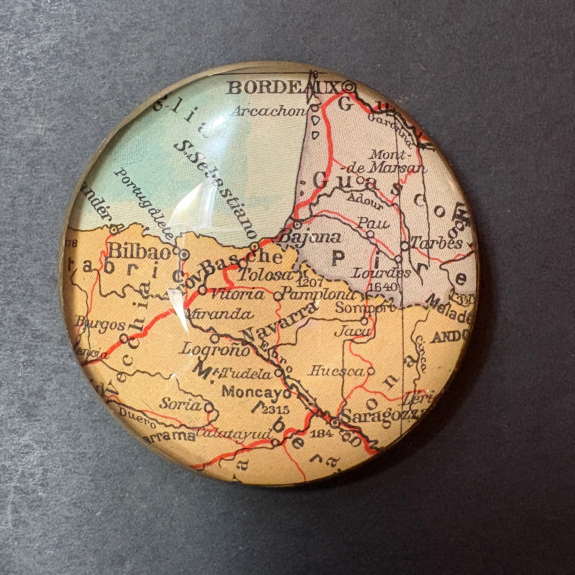 Questo Occhiolino cattura l'essenza di quattro destinazioni iconiche attraverso frammenti cartografici autentici tratti da un atlante del 1932. Perfetto per gli appassionati di kitesurf, arte e cultura enologica, il pezzo combina nostalgia geografica con utilità contemporanea. Le immagini originali preservano la memoria di confini e nomenclature storiche, oggi trasformate dal tempo. Montato su una base in velluto nero che ne esalta l'eleganza, rappresenta un accessorio sofisticato per chi apprezza i dettagli e la storia nascosta nei luoghi che ama.