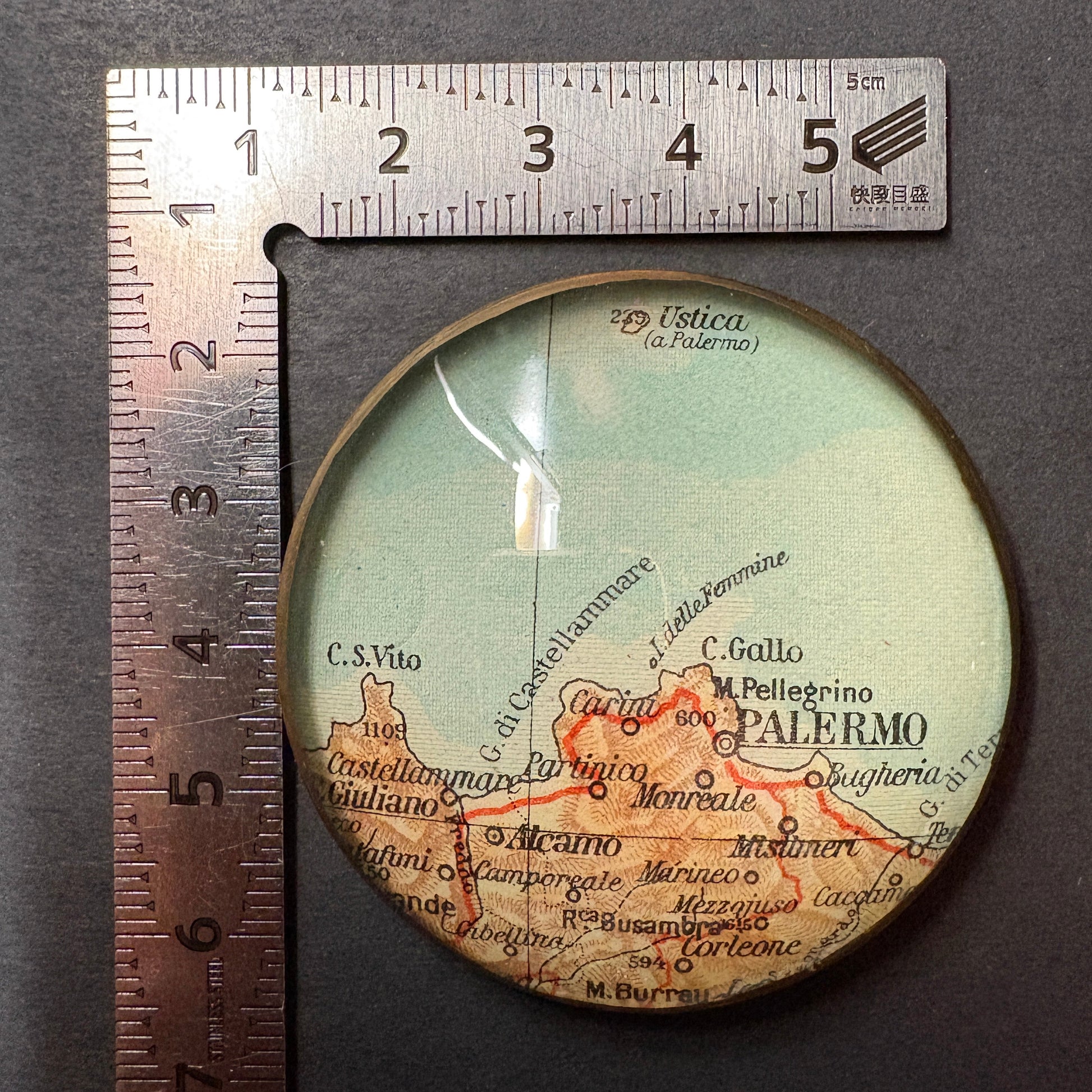Tre vedute siciliane catturate da un'atlante storico del 1932: Palermo, Alcamo e Ustica emergono come testimonianze cartografiche di un'epoca lontana. Questi frammenti geografici preservano la memoria di confini, nomenclature e assetti politici ormai trasformati, offrendo uno sguardo affascinante su come il territorio e la sua rappresentazione si siano evoluti nel corso del secolo. Ogni immagine racchiude la stratificazione temporale di una Sicilia diversa. La base in velluto nero esalta la preziosità dell'opera. Manutenzione: pulire delicatamente con panno asciutto.