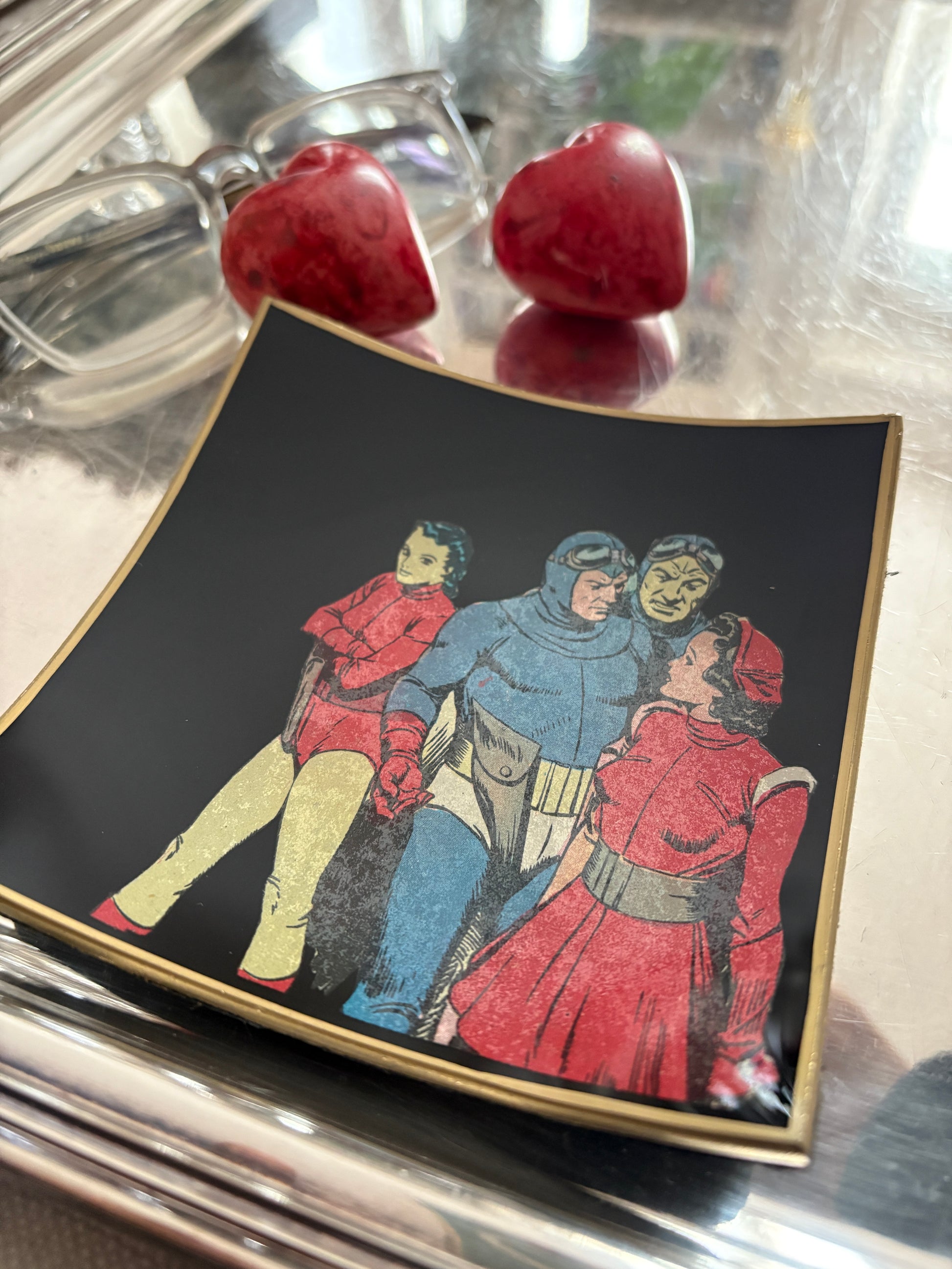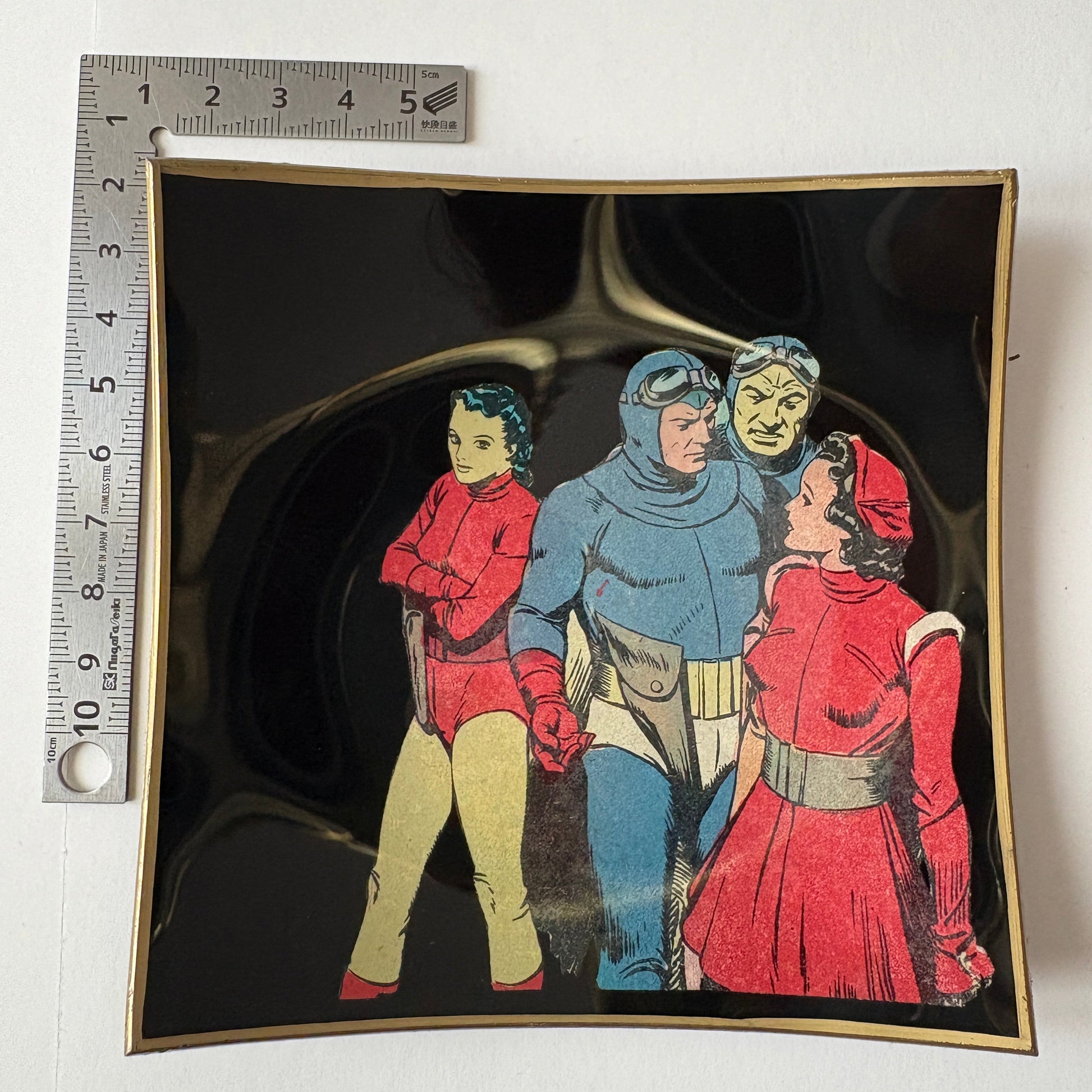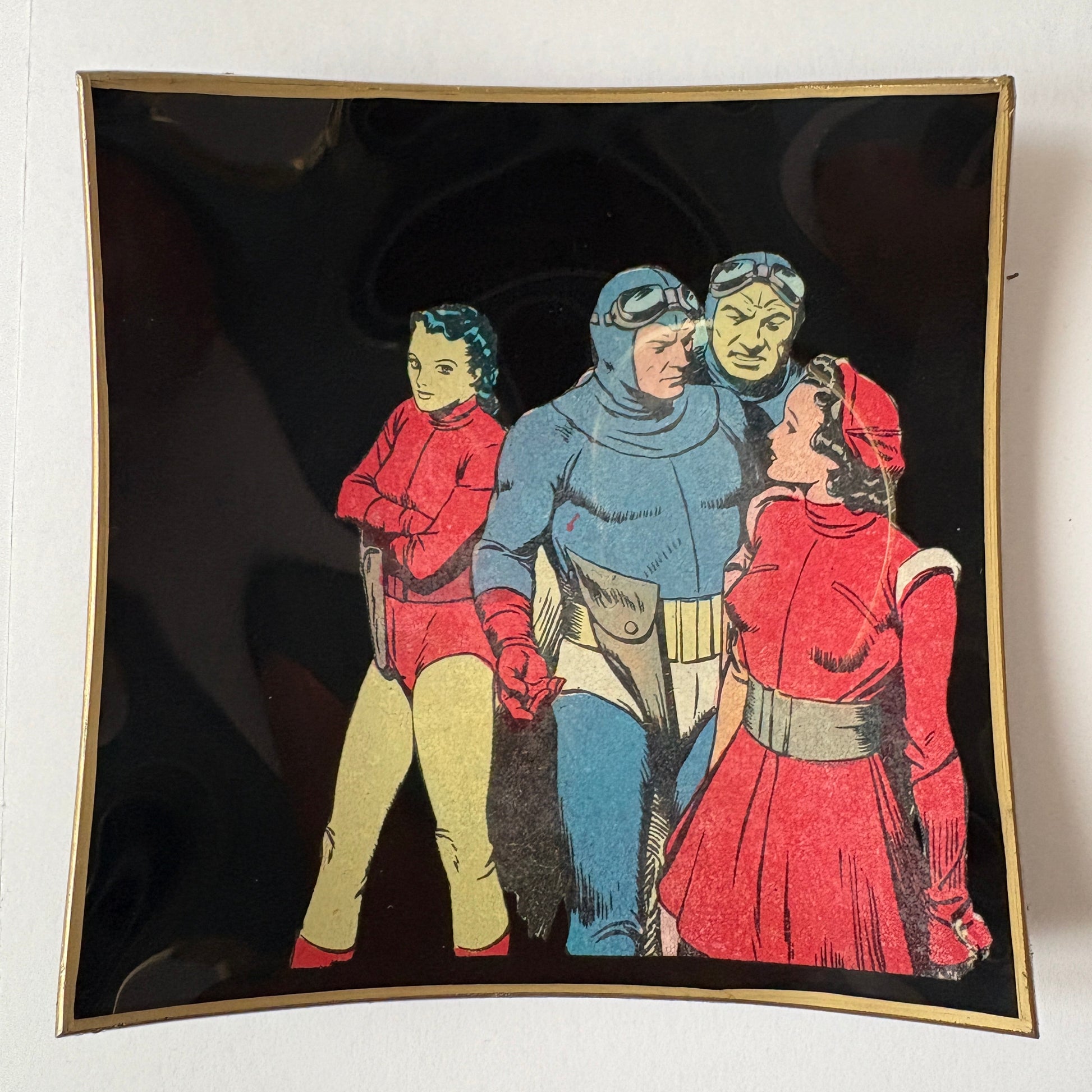 Pezzo autentico del 1965. Questo svuota tasche che misura 11,5x11,5 potrebbe essere il regalo ideale ad un amico che ama i fumetti. La base è in velluto nero. Manutenzione: detergere delicatamente con panno umido, evitando l'immersione in acqua.